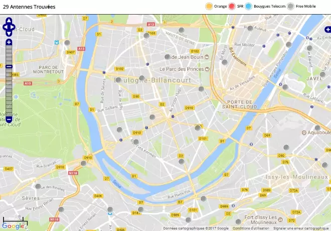 Free a également implanté 10 antennes mobiles 3G dans la ville de Boulogne-Billancourt.