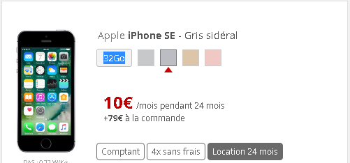 L’iPhone SE offre également la possibilité de le payer en 4 fois sans frais (99€ à la commande puis 99€ sur 3 mois). Enfin, la baisse d’applique également à la formule de location : 79€ à lors de l’inscription puis 10€ durant 24 mois (au lieu de 12€). Les pénalités de 100€ restent inchangées.