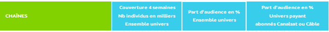 En comparant avec la vague précédente (du 29 août 2016 au 12 février 2017) on constate que la couverture 4 semaines pour Discovery Channel, passe de 2 591 000 de téléspectateurs à seulement 849 000 téléspectateurs, soit 3 fois moins d’audience. Le même constat est fait pour Discovery Science.