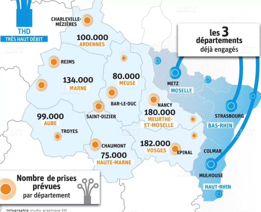 Il s’agit du plus grand réseau d’initiative public de France que viennent de remporter NGE et Altitude. “Ce sont au total, près de 1 500 000 prises, représentant 10% du plan « France THD » dans les zones d’initiative publique qui seront déployées par NGE et Altitude, dans tous les foyers, équipements publics et entreprises de 4300 communes de la Région Grand Est” détaille le communiqué de presse.