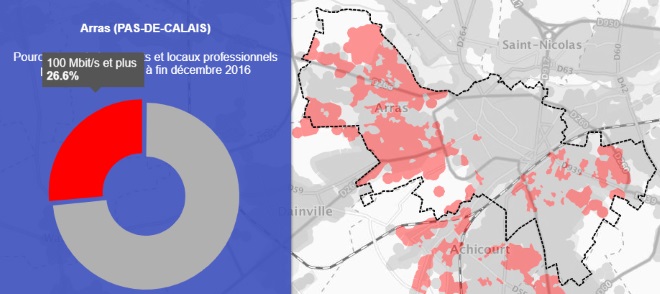 Aujourd’hui, grâce aux données fournis par l’Observatoire France Très Haut Débit, nous vous proposons de découvrir le déploiement du très haut débit pour tous les opérateurs sur la 174ème ville la plus peuplée de France : Arras.