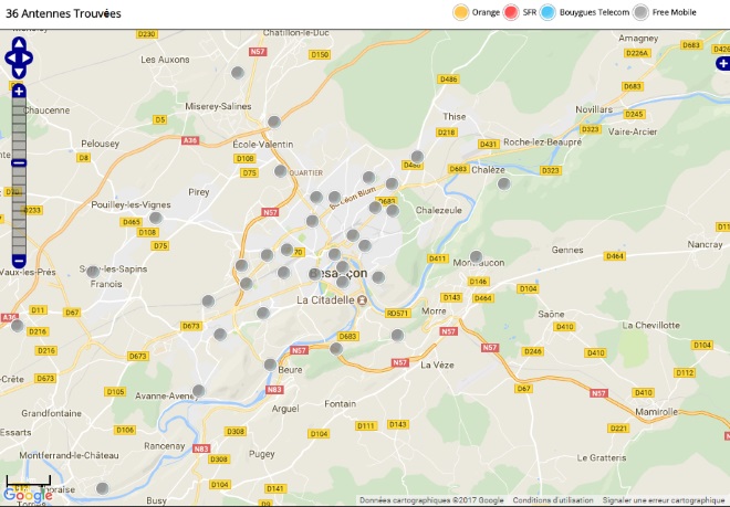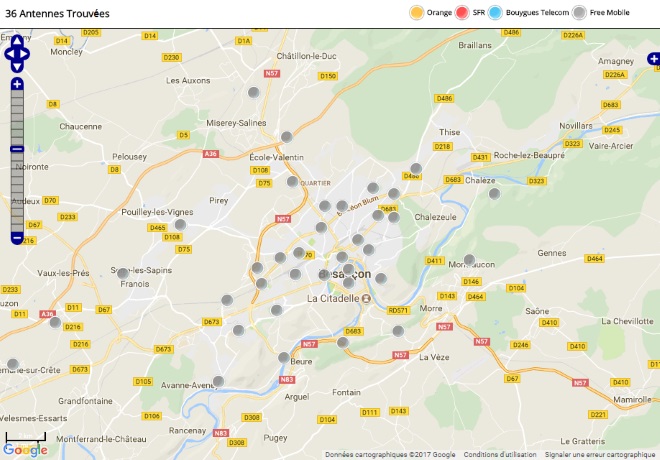 Découvrez la répartition des antennes mobiles Free 3G/4G sur Besançon