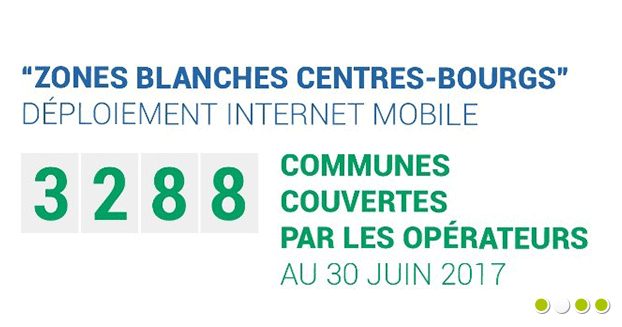La Fédération Française des Télécoms publie aujourd’hui les nouveaux chiffres nationaux de la couverture des zones-blanches centres-bourgs. Ainsi, au 30 juin 2017, ce sont 3 288 communes du programme « Zones Blanches – centres-bourgs », soit 218 supplémentaires en un mois (parmi lesquelles 1 256 communes de montagne) qui bénéficient de l’internet mobile de manière mutualisée par au moins trois opérateurs dont 1064 communes couvertes durant la seule année 2016.