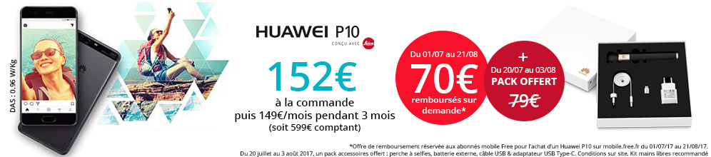 Huawei P10 : Un coffret d’accessoires, d’une valeur de 79€, est offert jusqu’au 3 août 2017