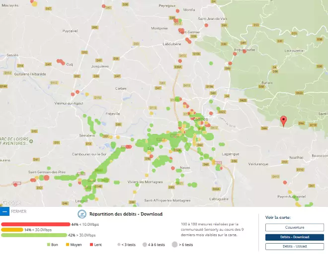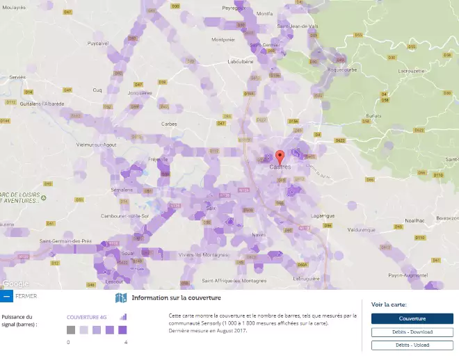 Avec les données de notre partenaire Sensorly, Univers Freebox vous propose un focus sur Castres, 170ème ville de France par sa population et vous fait découvrir la carte de la couverture du réseau 4G et des débits.