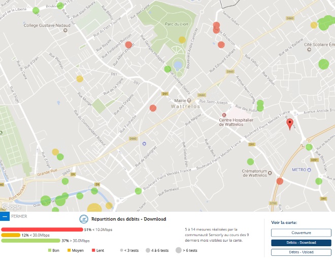 Avec les données de notre partenaire Sensorly, Univers Freebox vous propose un focus sur Wattrelos, 171ème ville de France par sa population et vous fait découvrir la carte de la couverture du réseau 4G et des débits.