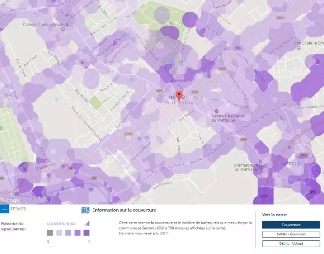 Avec les données de notre partenaire Sensorly, Univers Freebox vous propose un focus sur Wattrelos, 171ème ville de France par sa population et vous fait découvrir la carte de la couverture du réseau 4G et des débits.