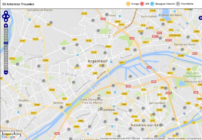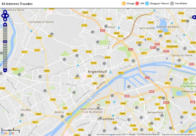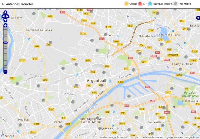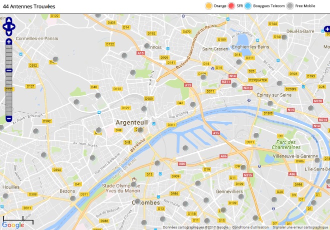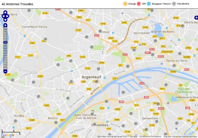 Découvrez la répartition des antennes mobiles Free 3G/4G sur Argenteuil