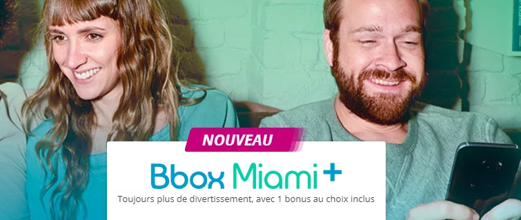 Concrètement, cette offre enrichie avec engagement de 12 mois, met l’accent « sur le divertissement en proposant plus de chaînes, plus de services, et plus de contenus pour toute la famille », dixit un communiqué. Ainsi , l’offre Bbox Miami+ inclut « un accès internet ADSL, VDSL ou Fibre FTTH jusqu’à 1 Gb/s en débit descendant et 250Mb/s en débit montant, selon l’éligibilité du client». Mais aussi un bouquet TV comprenant jusqu’à 170 chaînes, une ligne de téléphonie fixe avec les appels vers les fixes de plus de 110 destinations et vers tous les mobiles d’Europe», ainsi qu’un support de stockage de 128Go «sous forme de carte mémoire fournie lors de la souscription, permettant d’utiliser les fonctions de contrôle du direct et d’enregistrement des émissions». Grande nouveauté de l’offre, l’intégration d’un bonus à choisir librement parmi l’un des quatre proposés.