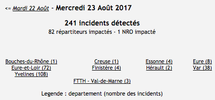 Depuis bientôt 8 heures maintenant, un problème réseau dans le nord-ouest de la France et en région parisienne impacte des DSLAM dans les départements des Yvelines (108), de l’Eure-et-loir (72) ainsi que de l’Essonne (4) et de l’Eure (8). Tous les abonnés Free connectés à ces DSLAM sont donc privés de services Internet, télévision et téléphonie fixe et leur Freebox reste bloquée sur Etape 2.