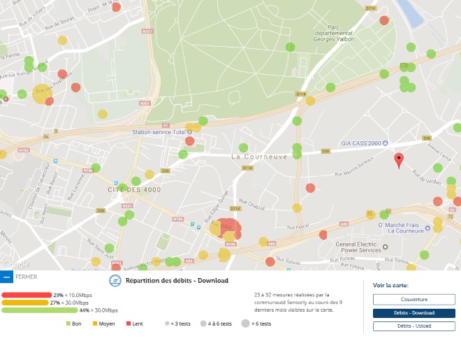 Avec les données de notre partenaire Sensorly, Univers Freebox vous propose un focus sur La Courneuve, 177ème ville de France par sa population et vous fait découvrir la carte de la couverture du réseau 4G et des débits.