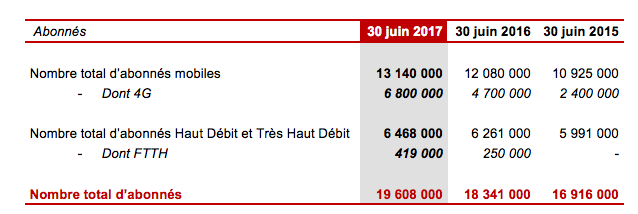 Une hausse de la base d’abonnés FTTH de plus de 200 000 abonnés en 2017, puis de 300 000 à 500 000 abonnés par an sur le moyen terme
