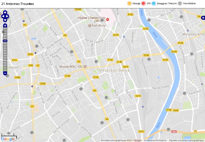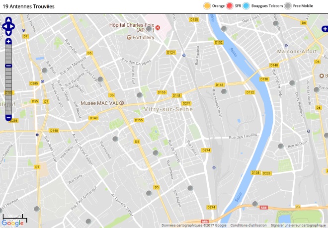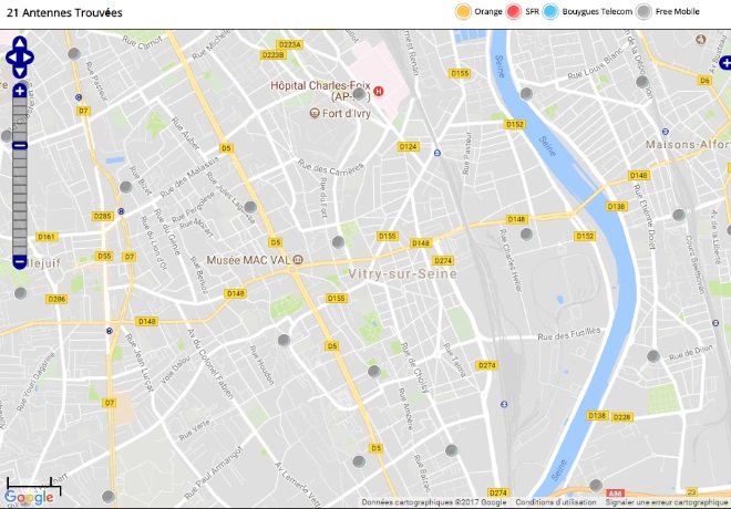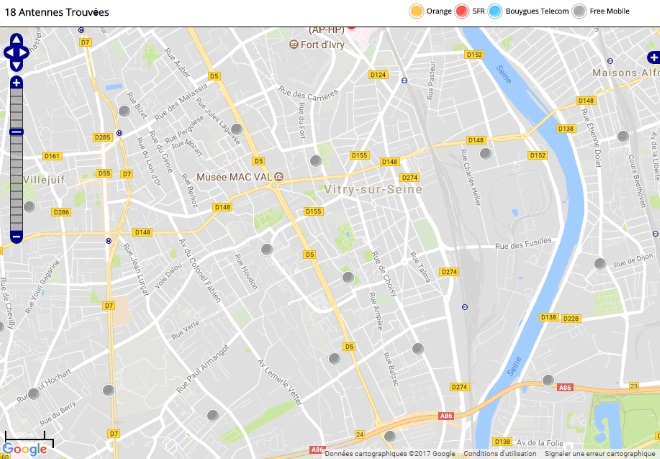 Découvrez la répartition des antennes mobiles Free 3G/4G sur Vitry-sur-Seine