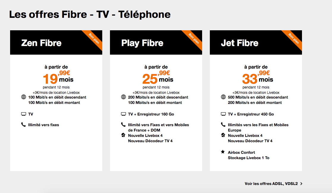 Pire encore d’après le DG d’Iliad et cela est facilement vérifiable, Orange omet d’afficher le prix de son abonnement hors promotion dans sa boutique en ligne. A la place, la mention « à partir de » devient légion. A aucun moment il n’est donc précisé la hausse du prix de l’abonnement au bout de 12 mois. Pour le savoir, il faut donc cliquer sur l’offre.