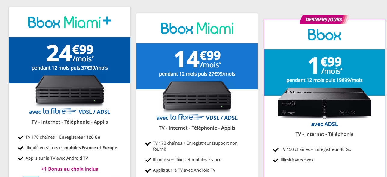 Comme le relaie BFMTV, Maxime Lombardini s’est montré assez excédé par la situation : « Il est temps que tout le monde affiche le véritable prix des box », a t-il martelé. Et il y a de quoi puisque Free est aujourd’hui, le seul opérateur à inclure le prix de la location de sa box dans la tarification de ses offres internet. SFR, Orange et Bouygues la facturent mais ne l’intègrent pas dans le prix total des abonnements proposés. Quand le supplément n’est pas affiché en dessous du prix comme pour Bouygues Telecom, un astérisque menant à une mention en bas de page vient informer d’un coût mensuel supplémentaire de 3 à 5 euros en fonction de l’opérateur.