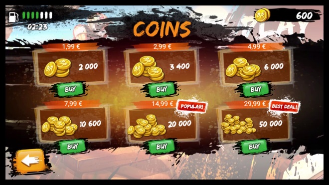 Le joueur a aussi la possibilité d’acheter des « Coins » avec des euros dans la rubrique « Store » afin d’accélérer sa progression. Attention, ceci n’est pas nécessaire pour avancer dans le jeu.