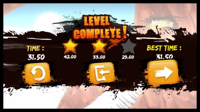 Après avoir terminé un niveau, un écran récapitulatif du niveau s’affichera et détaillera votre temps ainsi que votre nombre d’étoiles (une, deux ou trois).