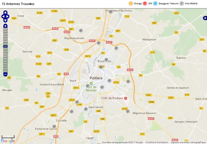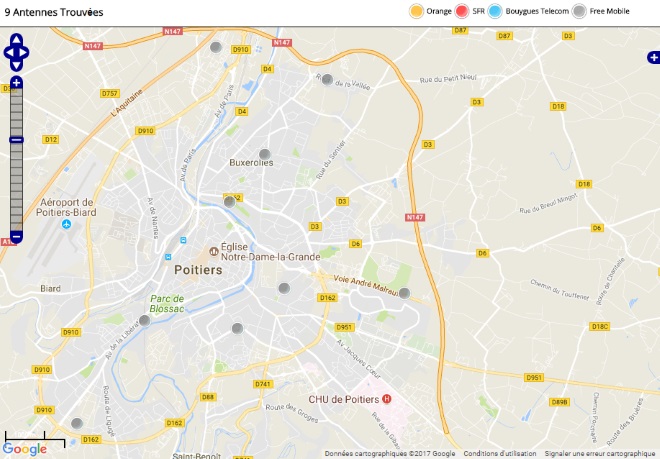 Découvrez la répartition des antennes mobiles Free 3G/4G sur Poitiers
