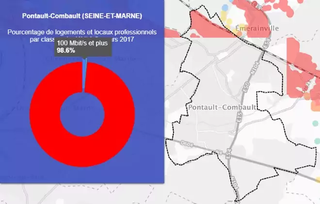 Grâce à la première carte on peut voir que la ville de Pontault-Combault est couverte à 98.6% par le très haut débit.