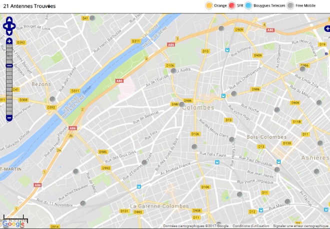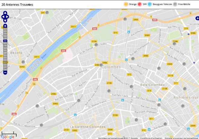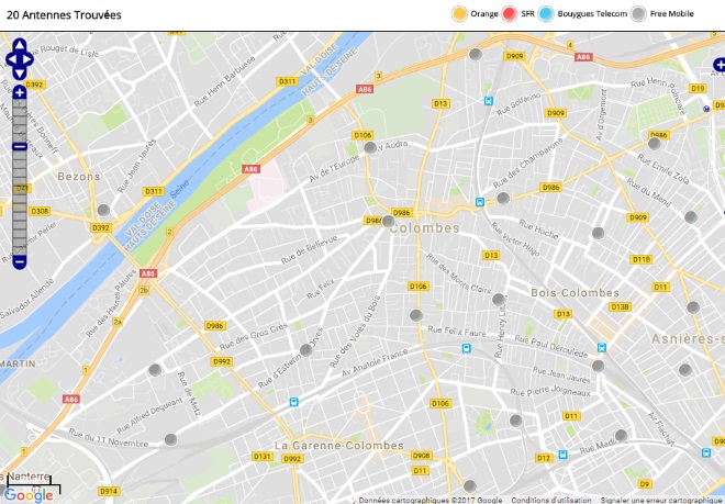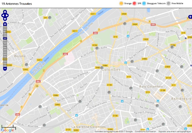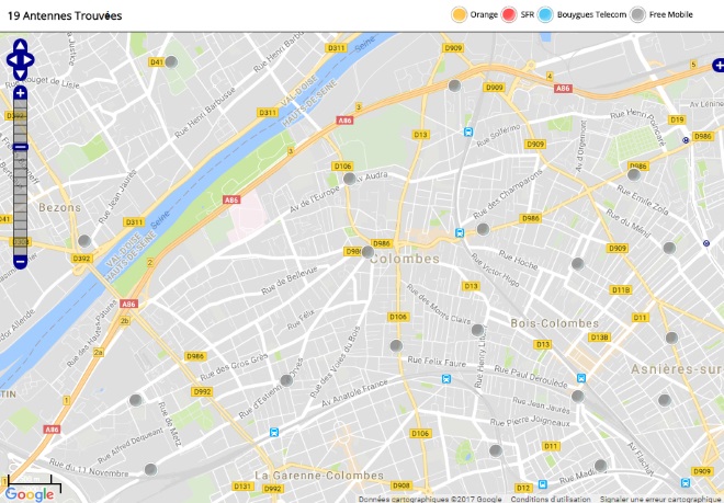 Découvrez la répartition des antennes mobiles Free 3G/4G sur Colombes