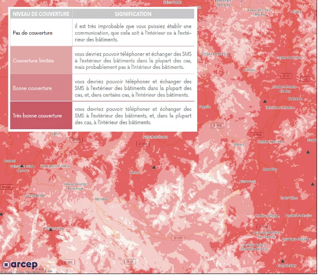 Ainsi, ces nouvelles cartes différencient désormais les zones de très bonne couverture, de bonne couverture, de couverture limitée, et celles où il n’y a pas de couverture, pour les services de voix et de SMS. Cet enrichissement permettra donc de mieux refléter la réalité vécue par les utilisateurs. Il est donc possible de zoomer dans telle rue, tel village, tel hameau et de visualiser où sont situés avec précision les "émetteurs" qu’ils soient 2G/3G ou 2G/3G/4G.