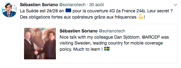 Sébastien Soriano n’est pas allé dans le pays du Père Noël cet été, mais il n’est pas passé loin et nous ramène des cadeaux de la Suède où il a rencontré son homologue. Il y a 15 ans le pays a choisi la voie qu’il souhaite qu’emprunte la France aujourd’hui. En effet, la Suède a parié sur des redevances limitées avec en contrepartie des obligations de couverture.”C’est un choix qui a produit des résultats. Un opérateur a dû s’engager à couvrir 100% des foyers suédois en 4G” explique-t-il.