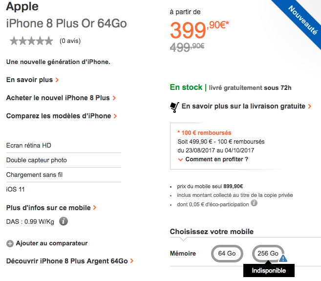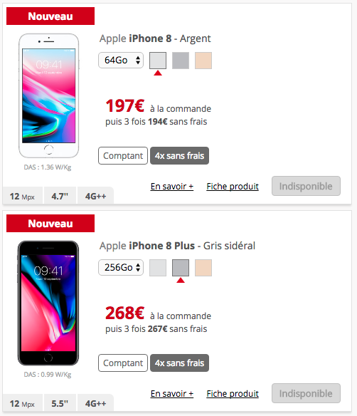 Ainsi, l’iPhone 8 (64 Go) et 8 Plus (256Go) sont indisponibles dans la boutique Free Mobile.