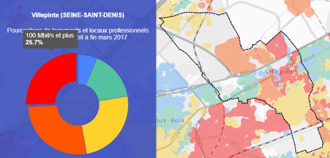 Grâce à la première carte on peut voir que la ville de Villepinte est couverte à 47,7% par le très haut débit.
