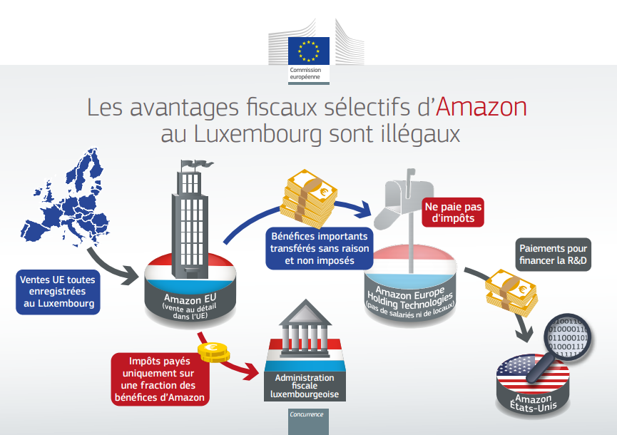 Il aura fallu près de 3 ans pour que la commission boucle son enquête et conclut qu’une “décision fiscale anticipative émise par le Luxembourg […] a réduit l’impôt payé par Amazon au Luxembourg, et ce sans aucune justification valable”.