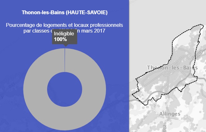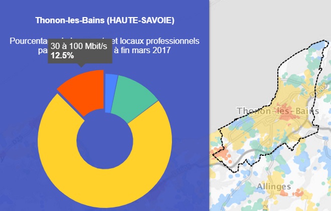 Grâce à la première carte on peut voir que la ville de Thonon-les-Bains est couverte à 12,5% par le très haut débit.
