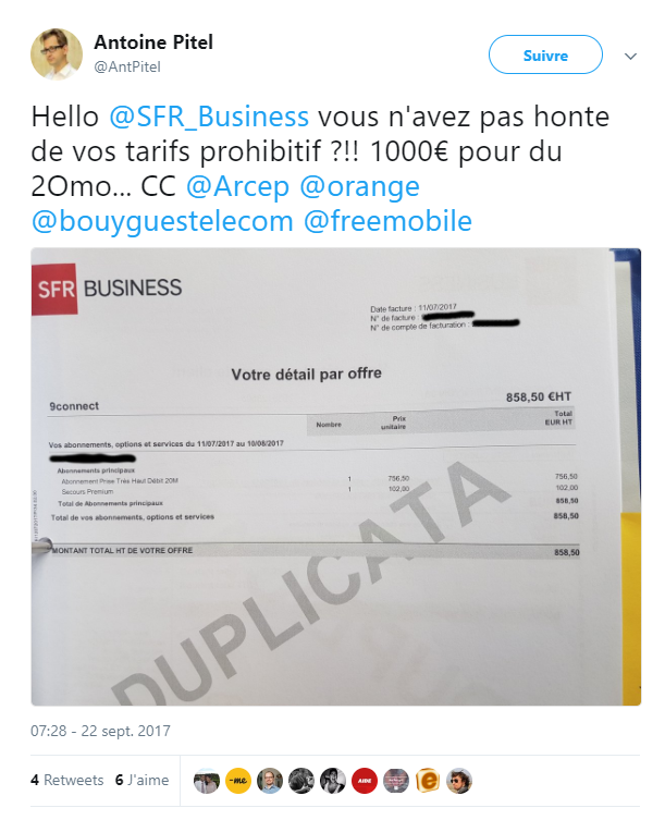 Pendant ce temps un client SFR Business est vert, sa facture est légèrement salée !