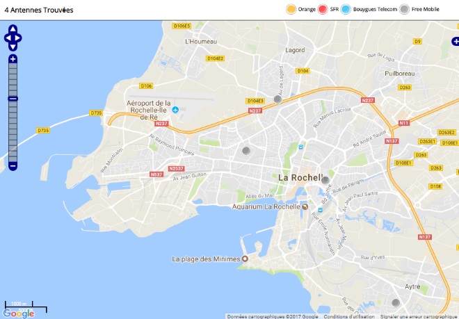 Découvrez la répartition des antennes mobiles Free 3G/4G sur La Rochelle