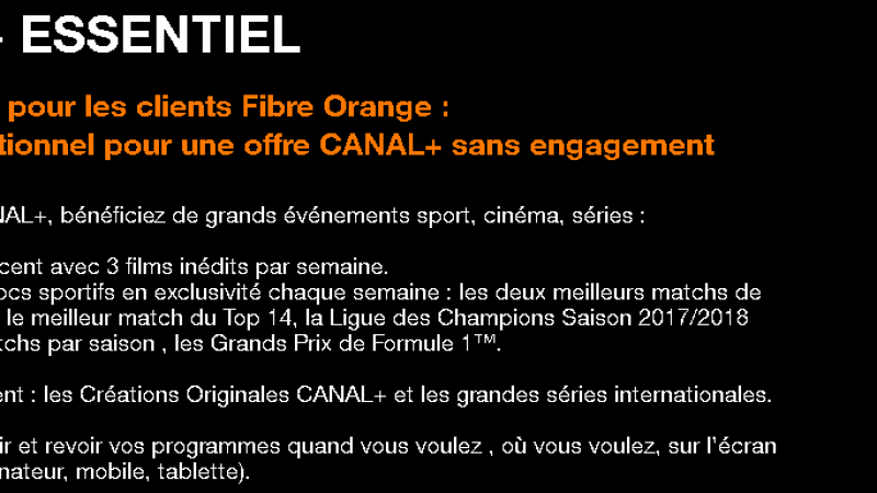 Pour le moment, il s’agit d’une formule exclusive à Orange, et uniquement pour les abonnés fibre. Mais il n’est cependant pas exclu que Canal+ propose cette solution chez les autres opérateurs.