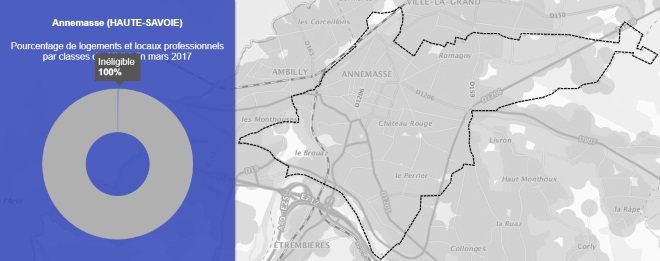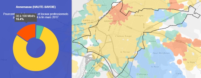 Grâce à la première carte on peut voir que la ville de Annemasse est couverte à 15.4% par le très haut débit.