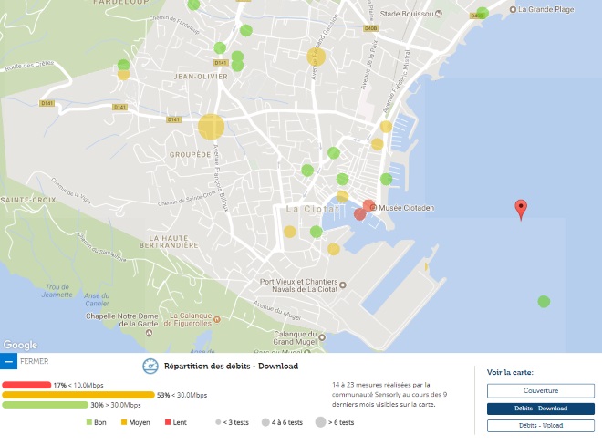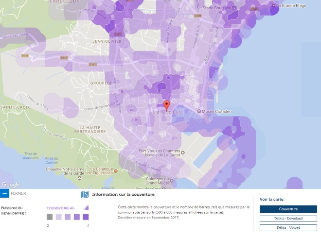 Avec les données de notre partenaire Sensorly, Univers Freebox vous propose un focus sur La Ciotat, 211ème ville de France par sa population et vous fait découvrir la carte de la couverture du réseau 4G et des débits.