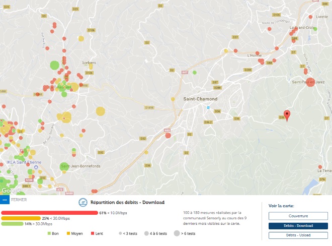 Avec les données de notre partenaire Sensorly, Univers Freebox vous propose un focus sur Saint-Chamond, 214ème ville de France par sa population et vous fait découvrir la carte de la couverture du réseau 4G et des débits.