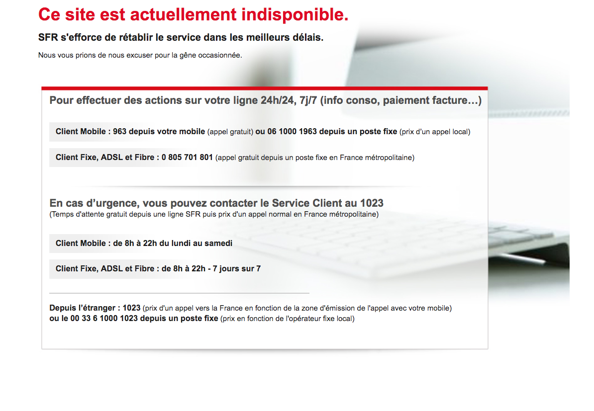 SFR s’efforcera de rétablir le service dans les meilleurs délais.