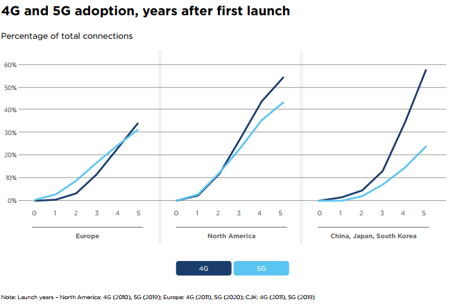 En Europe, la Commission et les acteurs du secteur des télécommunications cherchent à jouer un rôle majeur dans le développement des technologies 5G avant son lancement. C’est ce qui pousse GSMA a conclure que le déploiement de la 5G devrait dépasser le taux d’adoption de la 4G lors de son lancement.