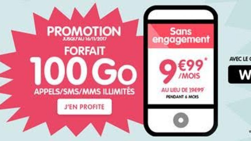 Après son lancement le 16 octobre dernier, NRJ Mobile propose son forfait Woot 100 Go au tarif de 9.99 € par mois pendant 6 mois. Cette offre est valable jusqu’au 16 novembre.