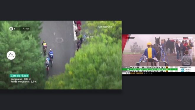Capture d’écran de la fonction « Multi-Live » avec 2 chaînes de sport sélectionnées