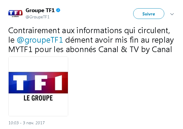 Nouvel épisode aujourd’hui puisque TF1 annonce qu’il n’a pas mis fin au replay sur les offres Canal.