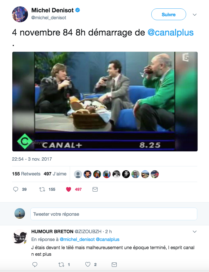 Comme le tweete Michel Denisot ce matin, le 4 novembre 1984, Canal+ célébrait sa première, le vin rouge coulait à flot mais depuis c’est de l’eau qui a coulé sous les ponts !