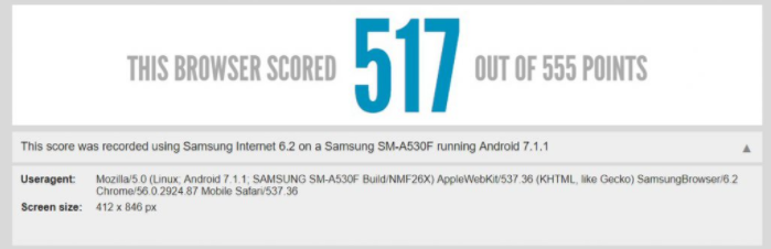 Le site spécialisé a découvert dans la base de données du Benchmark HTML5Test que l’appareil nommé SM-A530F (le nom de code du Galaxy A5 2018) est affiché avec un écran de 412 x 846 pixels. Cela signifie que le futur smartphone adopterait une dalle au format 18,5 : 9 tout comme le Galaxy S8. Ce prochain Galaxy A5 2018 pourrait donc embarquer un écran bord à bord Infinity Display.