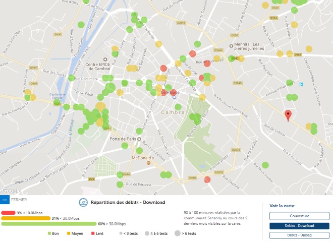 Avec les données de notre partenaire Sensorly, Univers Freebox vous propose un focus sur Cambrai, 238ème ville de France par sa population et vous fait découvrir la carte de la couverture du réseau 4G et des débits.