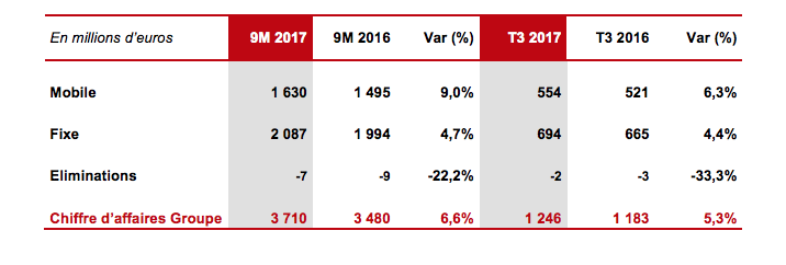 Malgré de nombreuses promotions de la part des concurrents, Iliad enregistre une hausse de son chiffre d’affaires de 4,4% sur ses activités Haut Débit et Très Haut Débit au 3ème trimestre 2017.