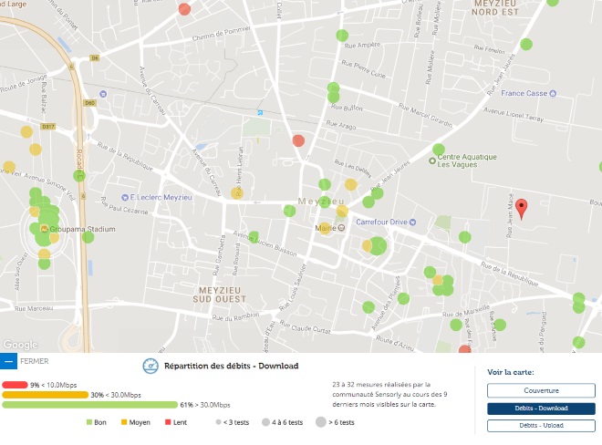 Avec les données de notre partenaire Sensorly, Univers Freebox vous propose un focus sur Meyzieu, 242ème ville de France par sa population et vous fait découvrir la carte de la couverture du réseau 4G et des débits.