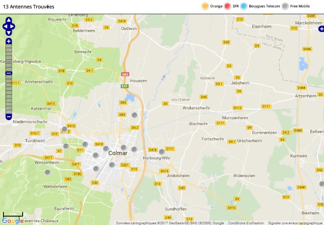Free a également implanté 8 antennes mobiles 3G dans la ville de Colmar.