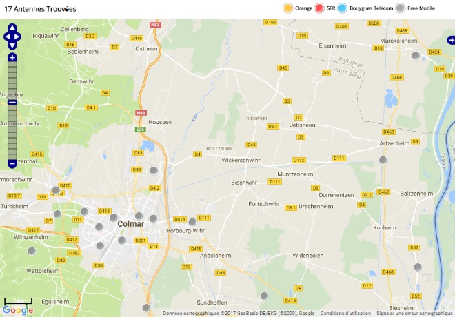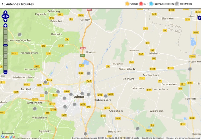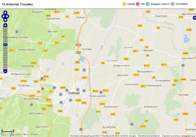 Découvrez la répartition des antennes mobiles Free 3G/4G sur Colmar