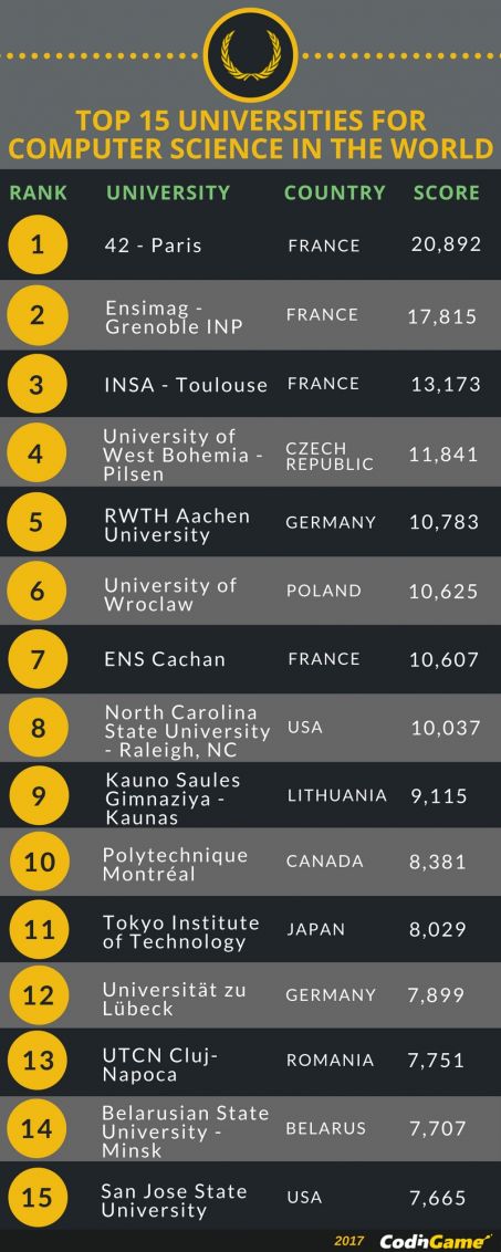L’Ecole 42 se place ainsi en première position, devant l’école publique d’ingénieurs en informatique de Grenoble et l’Institut National des Sciences Appliquées de Toulouse.