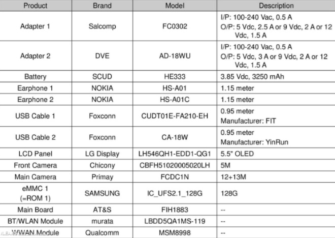 La fiche technique révélée par Slashleaks confirme que le mobile embarquera une dalle OLED de 5,5 pouces fabriquée par LG. L’utilisation d’un écran OLED est un plus comparé au Nokia 8, la précédente version du terminal qui était doté d’un écran LCD IPS. L’appareil sera animé par un processeur Snapdragon 835 et disposera de 128 Go de stockage. Le Nokia 9 sera également équipé d’un double capteur photo à l’arrière de 12 et 13 mégapixels, d’un objectif 5 mégapixels à l’avant ainsi que d’une batterie de 3250 mAh. Le smartphone tournera sous Android 8.0 Oreo, cependant, le document n’indique pas la quantité de mémoire vive qu’il intégrera.